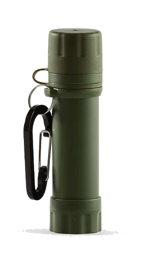 Kompakt vattenreningsfilter som renar upp till 1500 liter vatten. Tar bort bakterier och mikroorganismer ner till 0,01 µm. Levereras med hopvikbar flaska (400 ml) och sugrör. Perfekt för friluftsliv och krisberedskap.